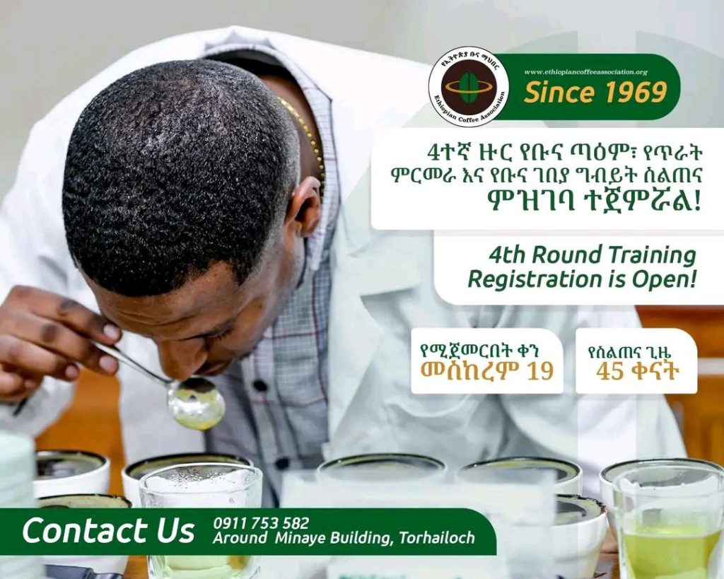 The Ethiopian Coffee Association delighted to announce the 4th Round Training on Coffee Cupping, Raw Analysis and Coffee Marketing. This Program is designed to strength knowledge,skills and capacity in coffee sector – from quality to international trade.
